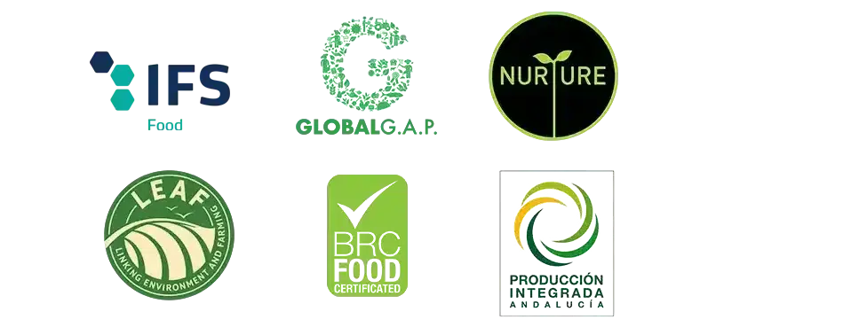 Ofrecemos frutas de la más alta calidad, respaldadas por los principales certificados de calidad en la industria agrícola. Estos certificados son un testimonio de nuestro compromiso con la excelencia en cada etapa del proceso de producción, desde el cultivo hasta la cosecha y el empaquetado.